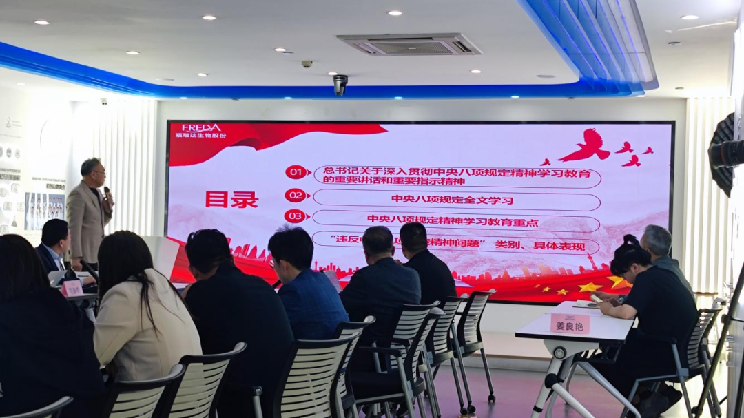 (福瑞達黨委委員、副總經理,福瑞達生物股份董事長、總經理高春明圍繞八項規定精神學習教育講授黨課)