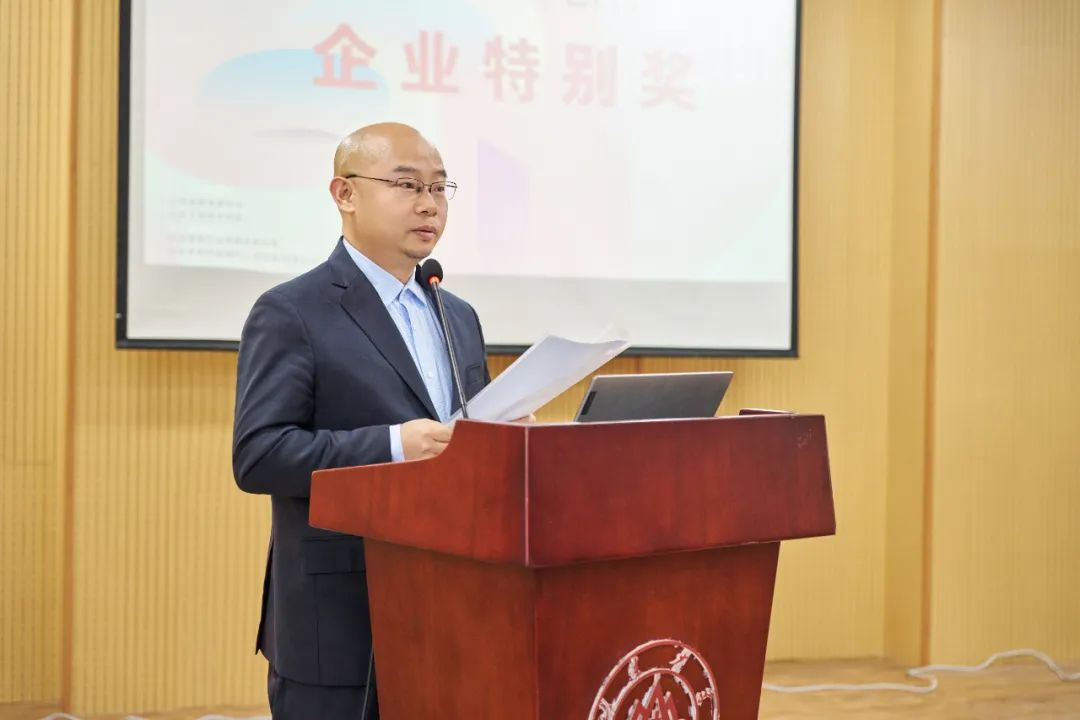 福瑞達生物股份戰(zhàn)略與品宣管理部總監(jiān)王旭東宣讀了福瑞達UMT品牌設(shè)計專題企業(yè)特別獎獲獎名單并致辭。他表示,借助大賽平臺,選手們將UMT的品牌理念、產(chǎn)品元素與創(chuàng)作深度融合,為品牌文化建設(shè)帶來諸多啟發(fā)。UMT是由福瑞達生物股份員工共創(chuàng)的品牌,通過品牌主題賽同時激勵大學(xué)生勇于創(chuàng)新與創(chuàng)業(yè),倡導(dǎo)“次元破壁