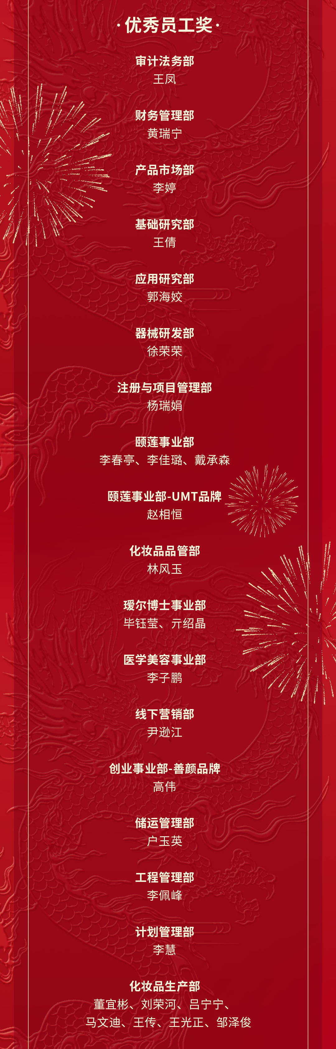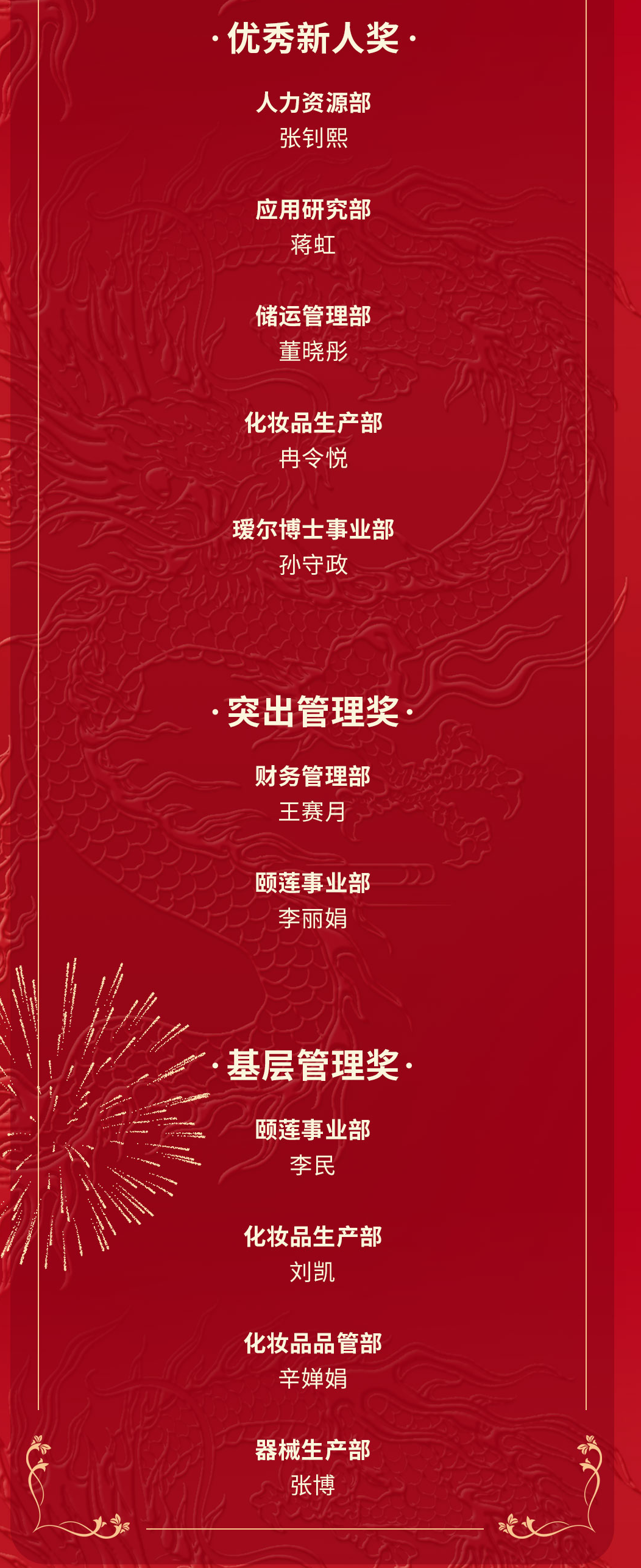 2023年,全體員工在公司領導班子的帶領下,齊心協力,銳意進取,奮發圖強,堅持貫徹集團1234高質量創新發展戰略,持續推進創新驅動、品牌引領、渠道深耕、數字轉型、精細化運營等各項工作,取得了豐碩成果,銷售收入、利潤雙雙再創歷史新高,闊步邁入中國化妝品行業頭部行列。
