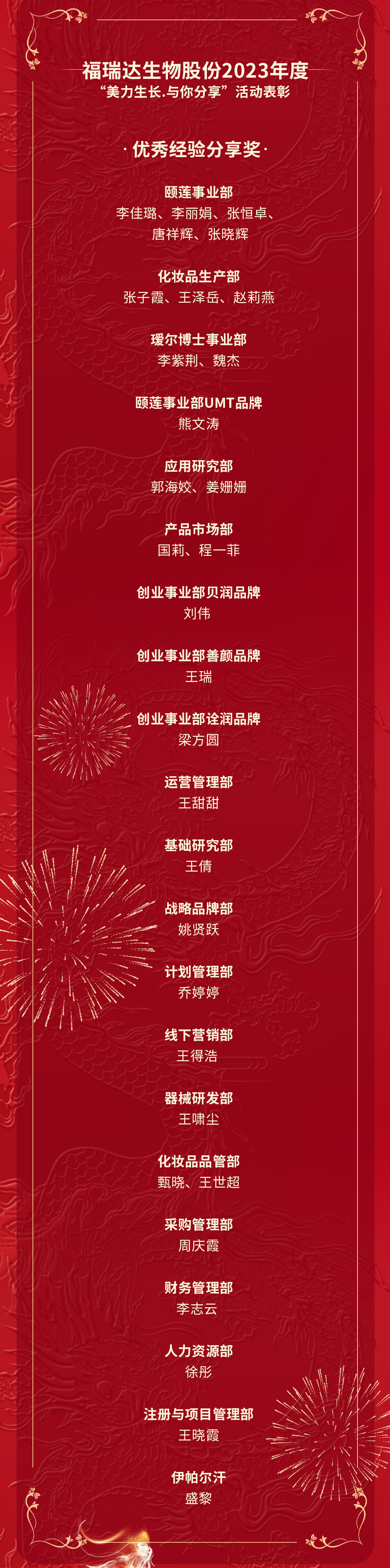 這一年,人力資源部根據公司長期戰略規劃和2023年管理綱要,為傳播公司內部優秀員工和優秀案例經驗,提升員工工作技能,營造全員學習氛圍,沉淀組織能力資產,特在公司內部開展“美力生長 與你分享”全員分享活動,并將優秀作品結集發布。本合集收納了公司2023年度共31期“美力生長 與你分享”優秀作品,包括銷售、研發、生產和職能4大板塊,21個部門的31篇案例。會上,對31位優秀分享者進行了表彰。