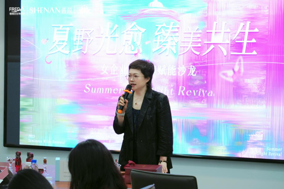 2025 年8月18日,由福瑞達生物股份善顏品牌與山東省女企業家協會聯合主辦的 “夏野光愈 臻美共生” 女企業家品牌賦能沙龍,在濟南智美科創園圓滿落幕。福瑞達生物股份善顏品牌主理人崔秋霞、中國香妝協會產業研究中心主任及行業專家姚永斌,與二十余位省、市女企業家協會會員齊聚一堂。本次沙龍通過世界美妝科技館溯源、行業趨勢智庫分享、美業生態破局變革交流、高功效護膚體驗四大環節,共同探索美妝產業的發展機遇與路徑,見證善顏品牌引領行業生態的重要拐點。
